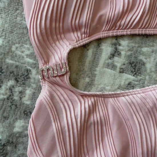 Fashion-Forward Pink Swimsuit – One Shoulder Cutout Bodysuit Style Swimwear