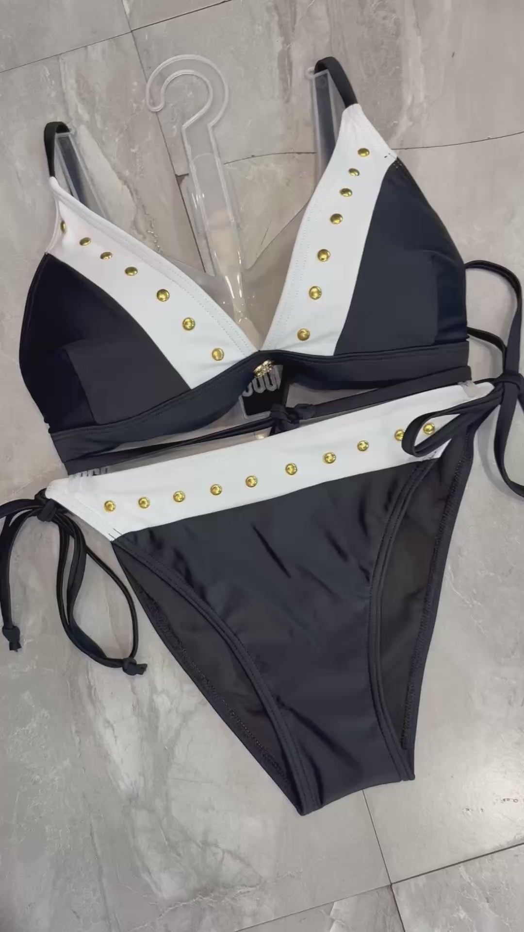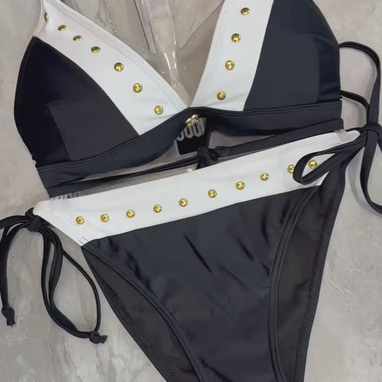 Chanel-Inspired Black and White Studded Bikini Set – Luxury Designer Dupe Swimwear