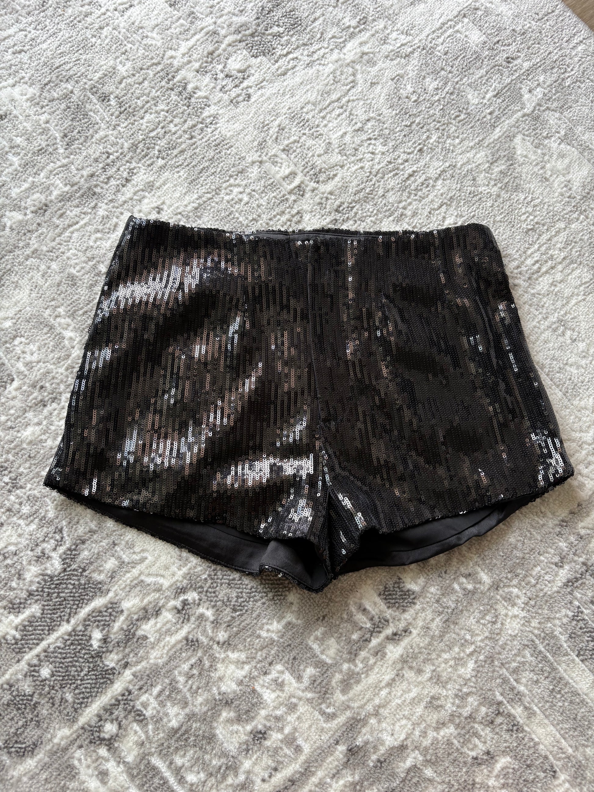 Get ready to shine in our dazzling Black Sequin Shorts! These shorts are the perfect statement piece for your next party, festival, or night out. Covered in shimmering black sequins, these shorts will catch the light and turn heads wherever you go.
